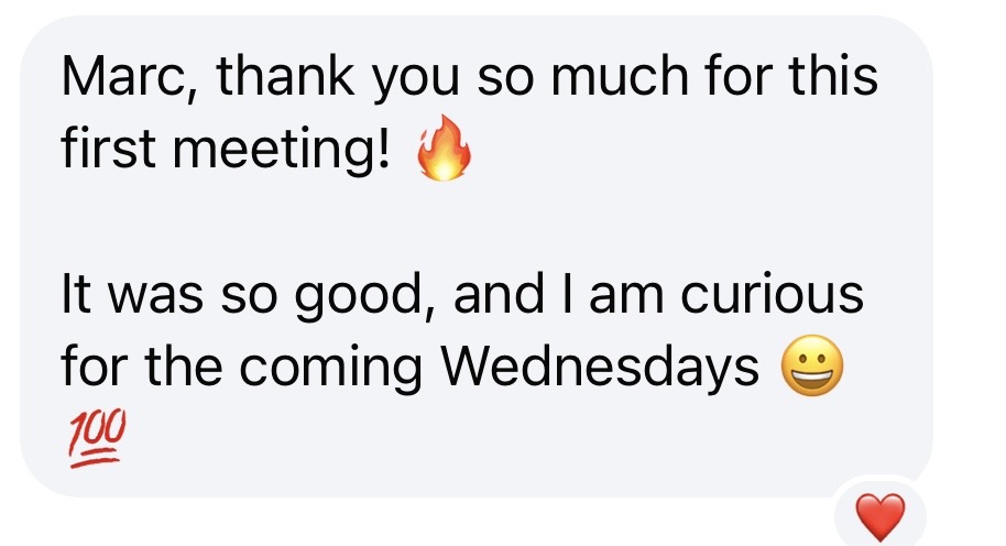 Wollte nochmal danke sagen für gestern und die anderen Meetings. Ist immer wie ein Mini-Urlaub. ❤️